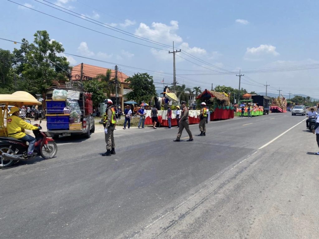วันนี้ 20 พ.ค.66 เวลา 13.04 น. โดยการอำนวยการของ พ.ต.อ.ประทีป ปัญโญวัฒน์ ผกก.สภ.หนองเรือ,พ.ต.ท.ปณต คุณาเมือง รอง ผกก.ป.ฯ,พ.ต.ท.ประสิทธิ์ นาใจดี สวป.ฯ มอบหมายให้ ร.ต.อ.ประศักดิ์ ถาบุตร รอง สว.(จร.)ฯ ร้อยเวร 60 พร้อมด้วย ชุดจราจร อำนวยความสะดวกการจราจรงานประเพณีบุญเดือนหก ประจำปี 2566 บริเวณถนนหนองเรือ-บ้านแท่น หน้าโรงพยาบาลส่งเสริมสุขภาพตำบลบ้านเม็ง