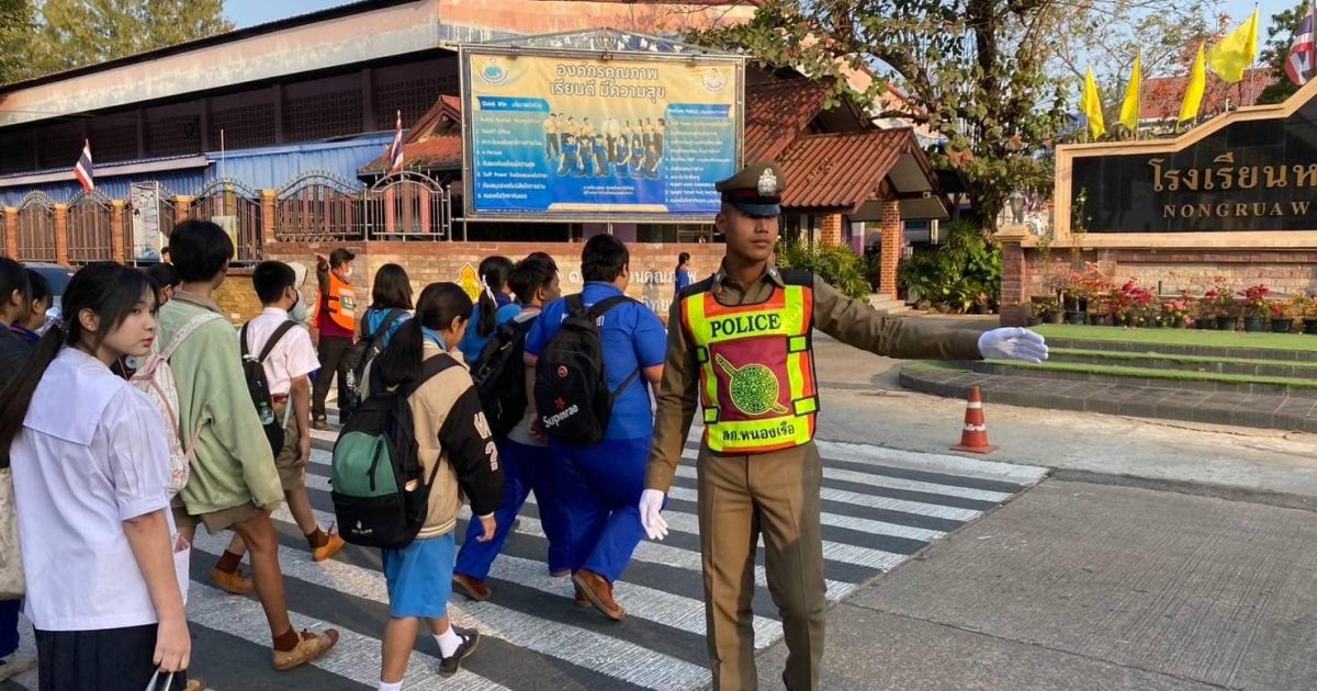 อำนวยความสะดวกการจราจร หน้าโรงเรียนหนองเรือวิทยา