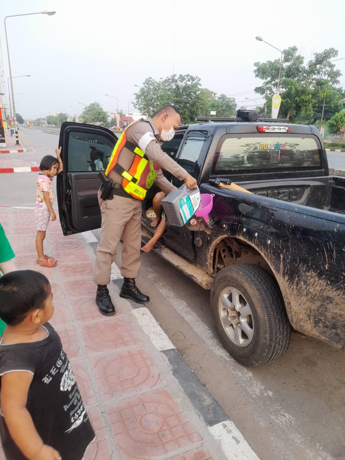 สายตรวจชุดจราจร ช่วยเหลือรถยนต์น้ำมันหมด