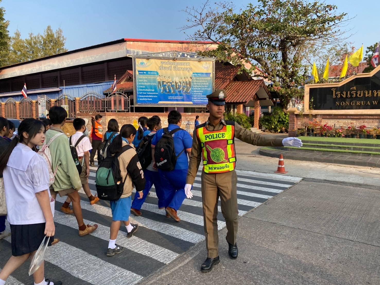 วันที่ 5 ก.พ.68 เวลา 07.45 น. สายตรวจจราจร สภ.หนองเรือ พร้อมด้วยนักเรียนนายสิบตำรวจฝึกหัดงานจราจร อำ