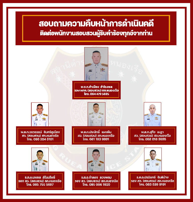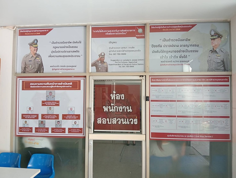 - ติดตั้งป้ายประชาสัมพันธ์ให้ประชาชนทราบเพื่อสอบถามความคืบหน้าการดำเนินคดีโดยมีรายชื่อ พนักงานสอบสวนที่จะติดต่อพร้อมเบอร์โทรศัพท์