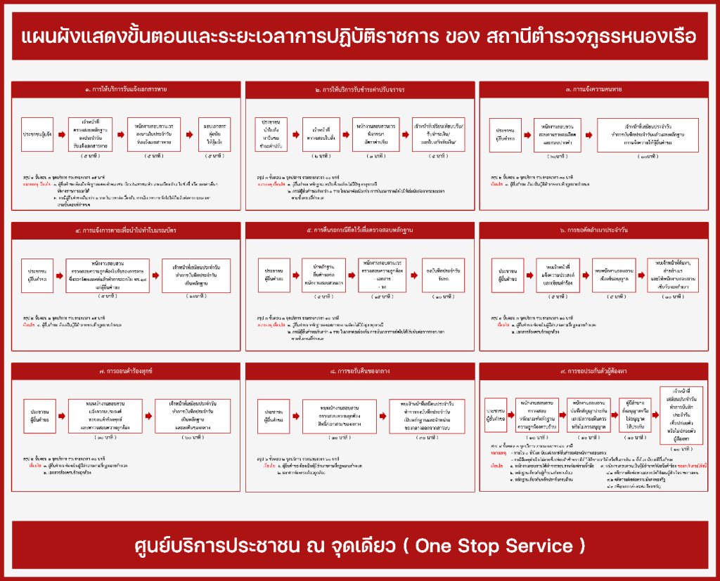 การกำหนดกรอบกิจกรรมการปฏิบัติงานของสถานีตำรวจภายใต้ระบบการทำงานและทรัพยากรที่มีอยู่ในแต่ละพื้นที่เพื่อ กำหนดเป็นพันธะสัญญาให้บริการ โดยแสดงขั้นตอนและระยะเวลาของการให้บริการของสถานีตำรวจที่ผู้มาใช้บริการควรทราบ
