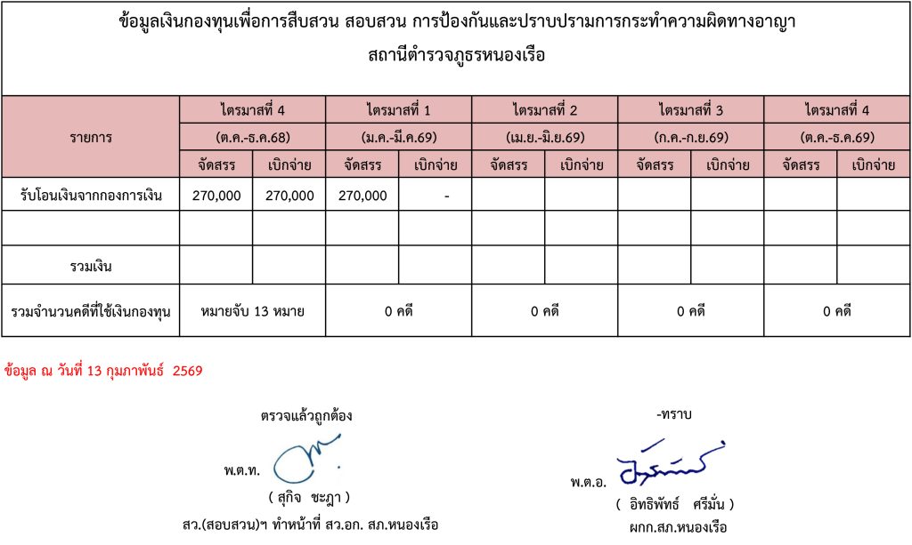 O13-ข้อมูลเงินกองทุนเพื่อการสืบสวนและสอบสวนคดีอาญา